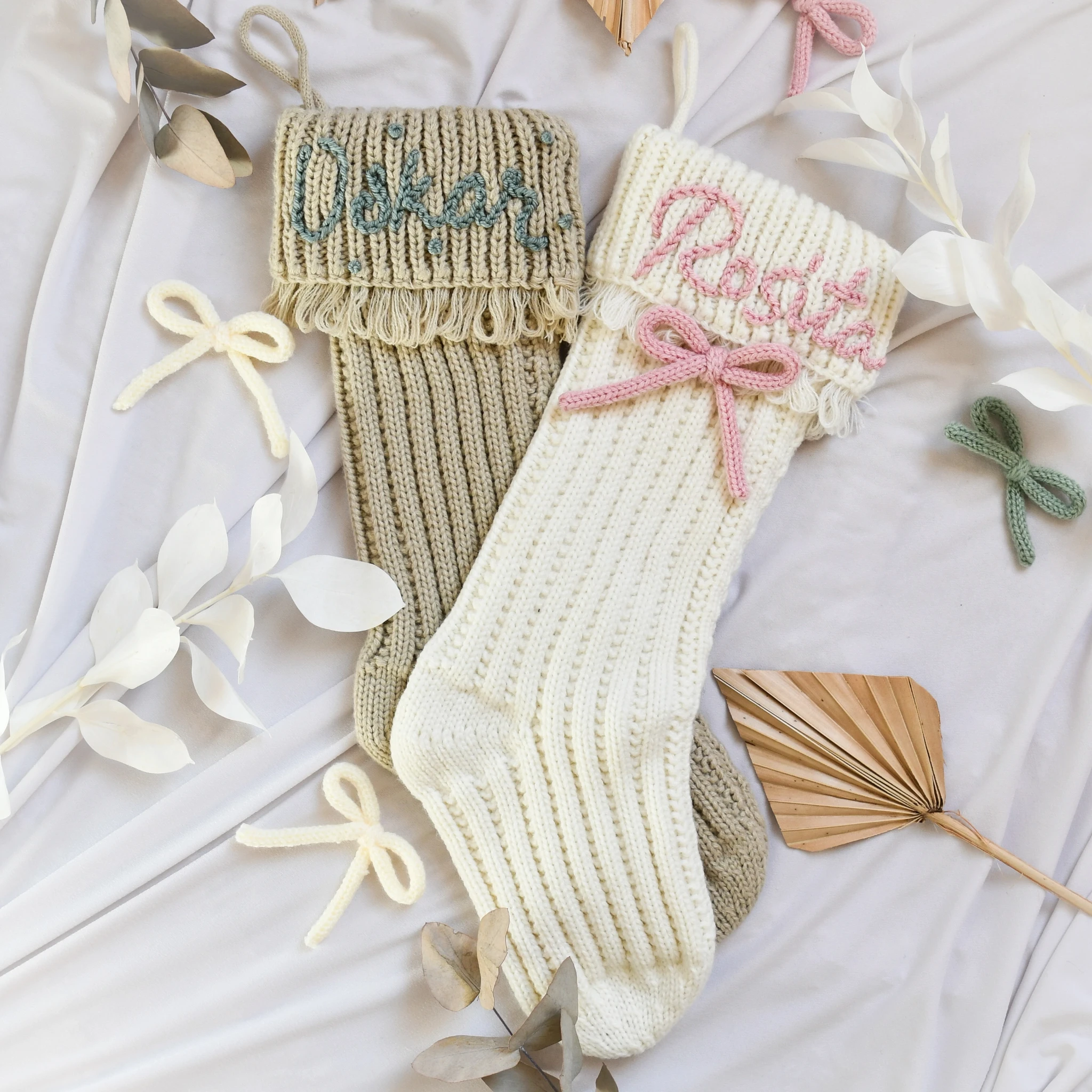 This special stocking features a hand-embroidered name, initial, or symbol on the top cuff – perfect as a newborn gift, for baby's first Christmas, or as a unique stocking for any loved one.