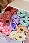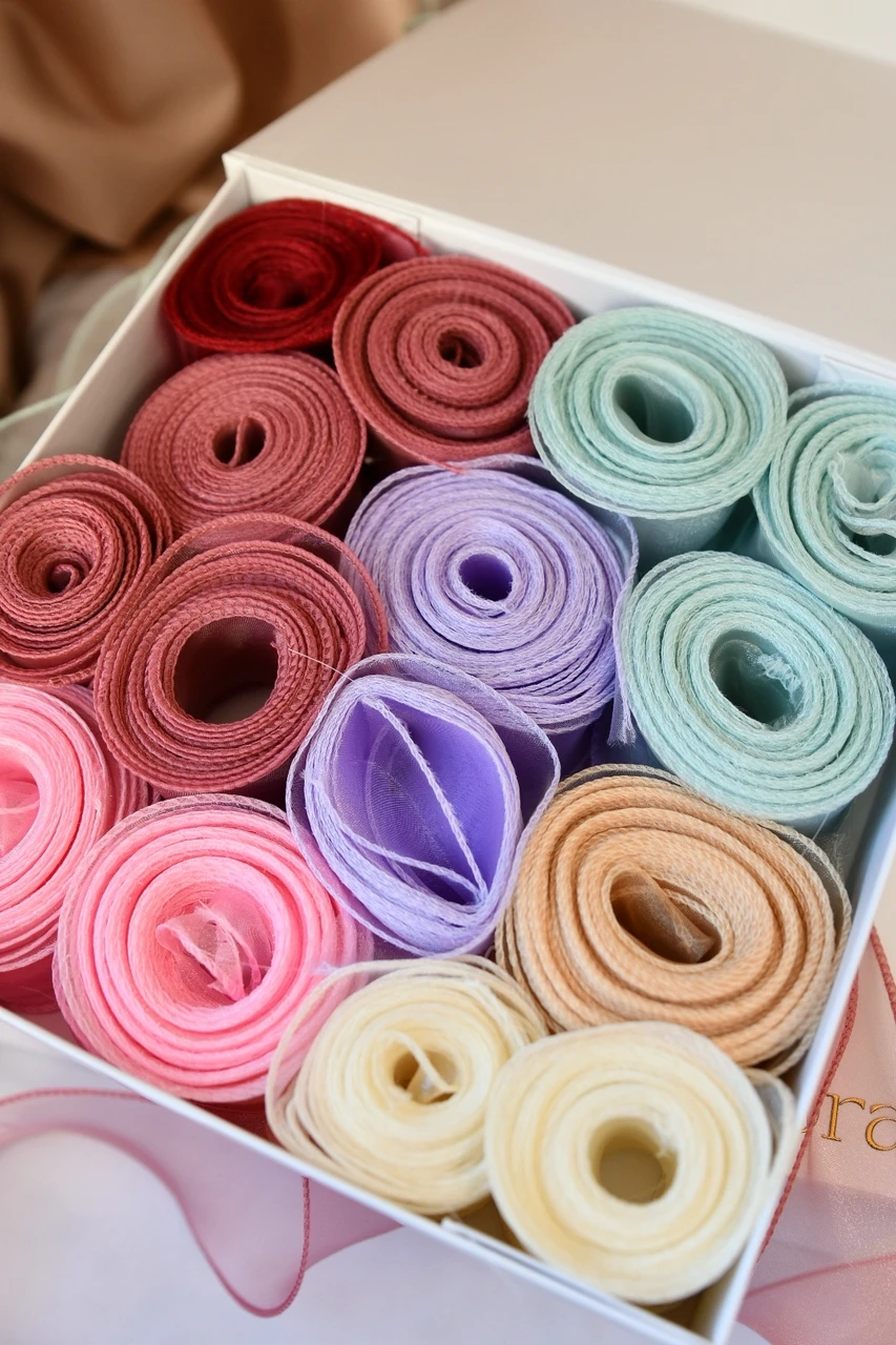 Ajatu valge kinkekarp magnetkinnitusega, ümber õhuline pael, mis on valitud just selleks, et sobituda karbi sisuga ning kingitus on sätitud siidipaberisse.