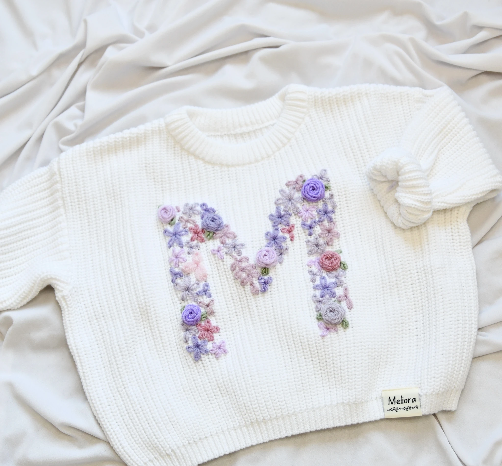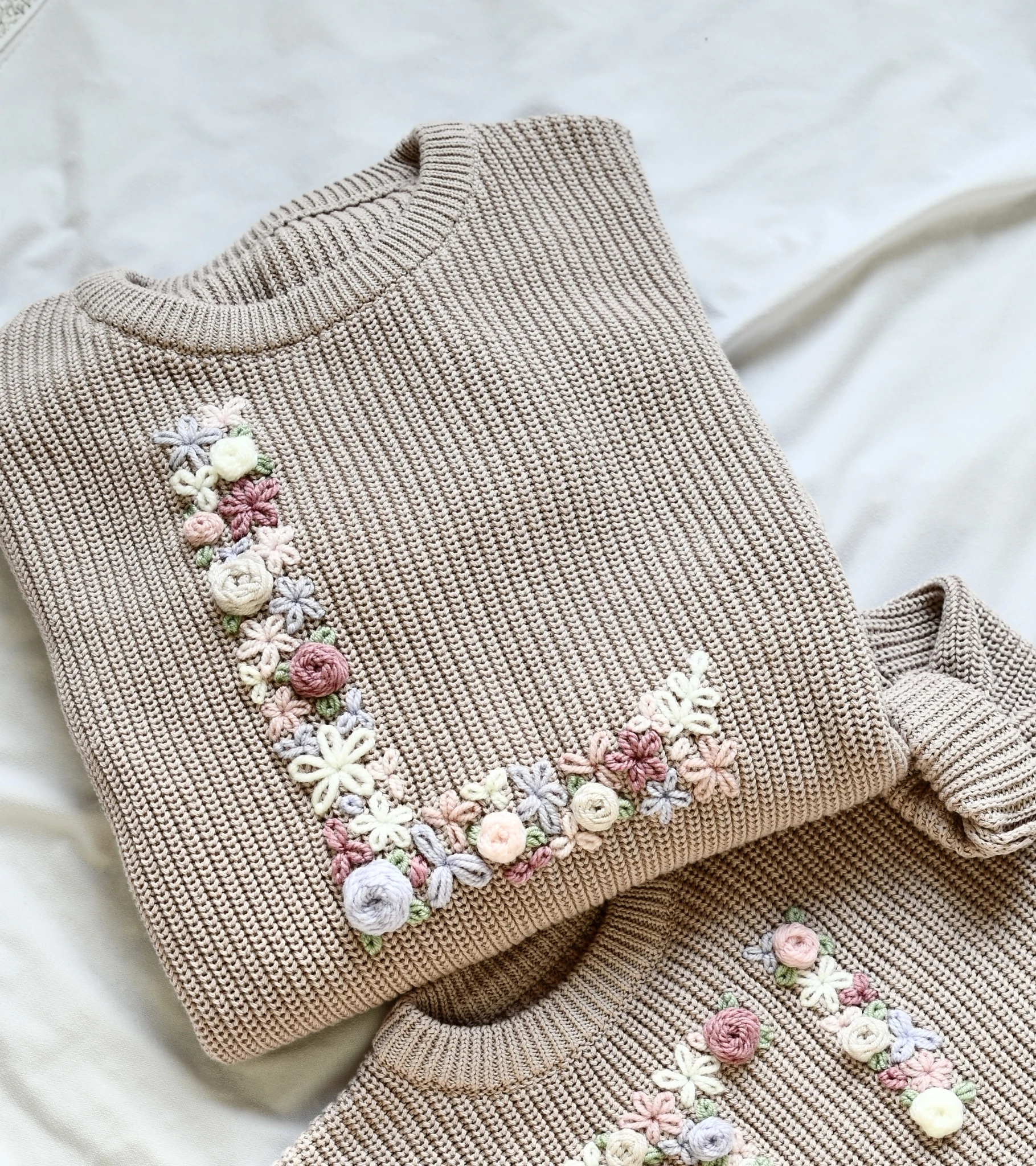 See personaalne kampsun on klientide lemmik - käsitsi tikitud erinevad pisikesed lillekesed pehmel puuvillasel kampsunil.