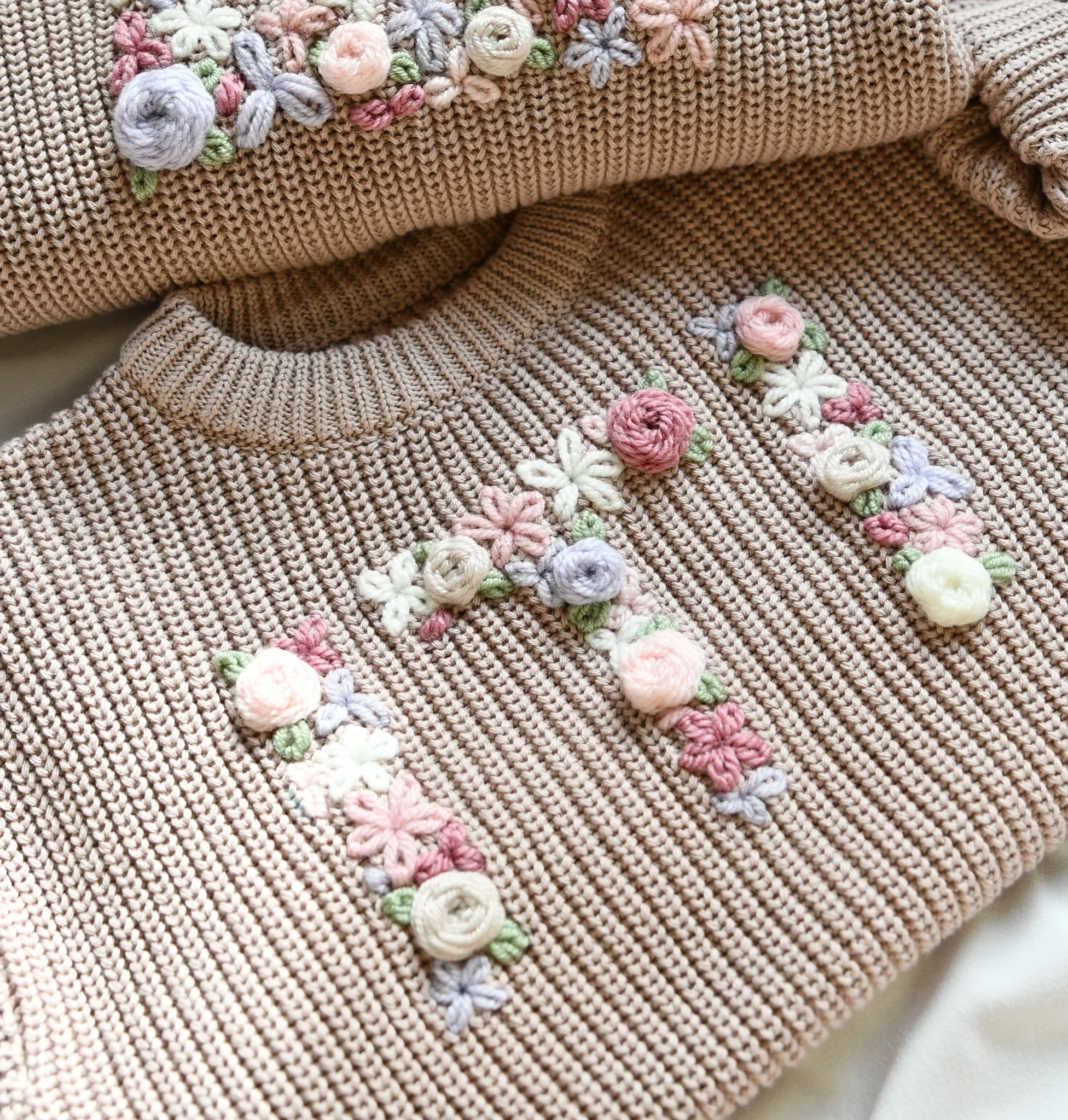 2–4 käsitsi tikitud tähte lille- ja lehemotiividest Võimalus lisada väikseid kristalle või lapse nime Iga tikand valmib hoole ja armastusega, sinu soovide järgi