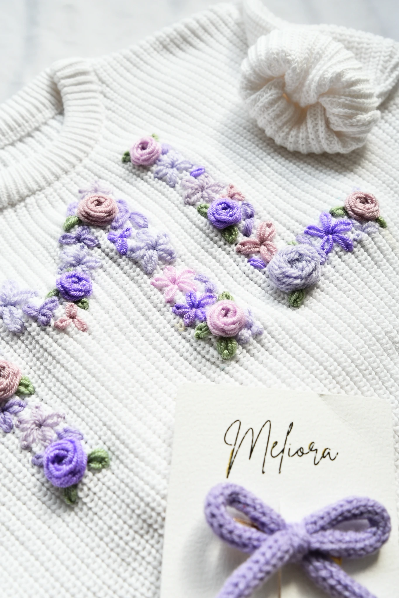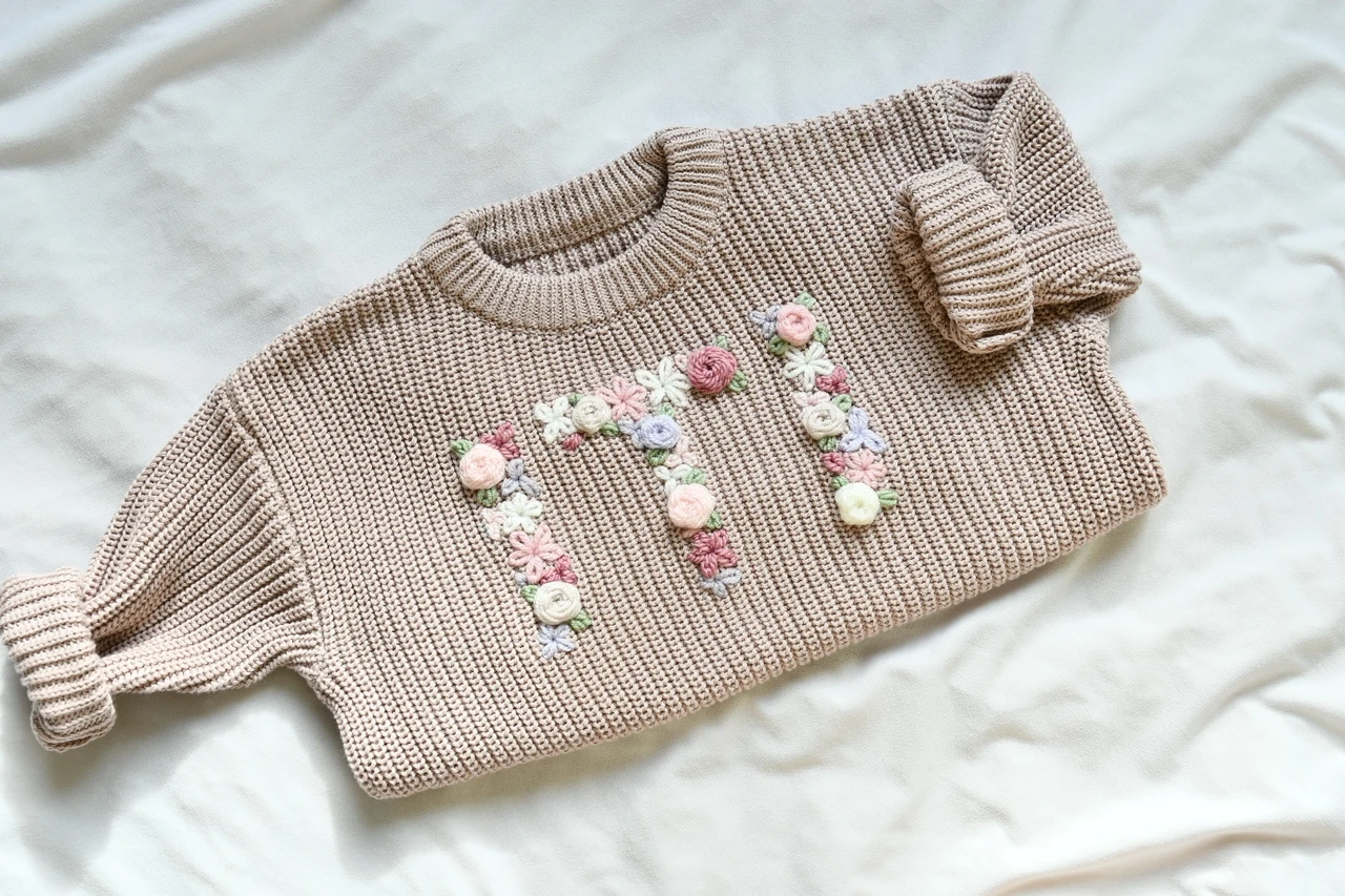 Uus ja eriline täiendus Meliora valikusse – kampsun lillelistest tähtedest nime või initsiaalidega.