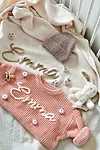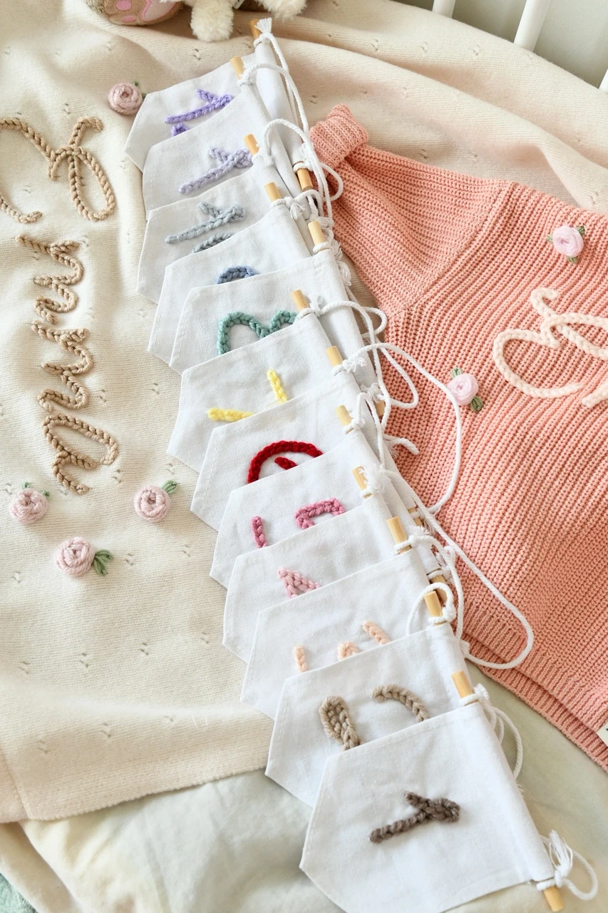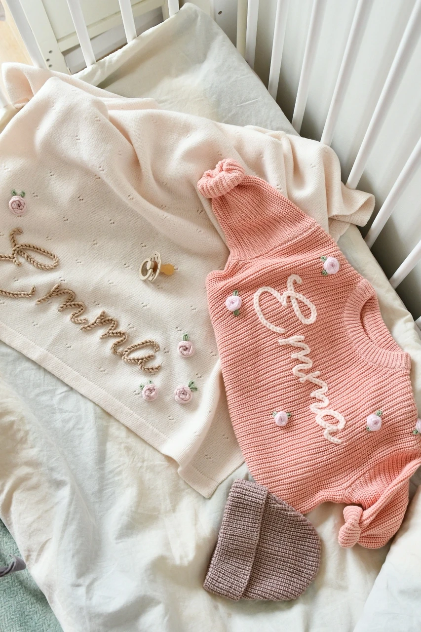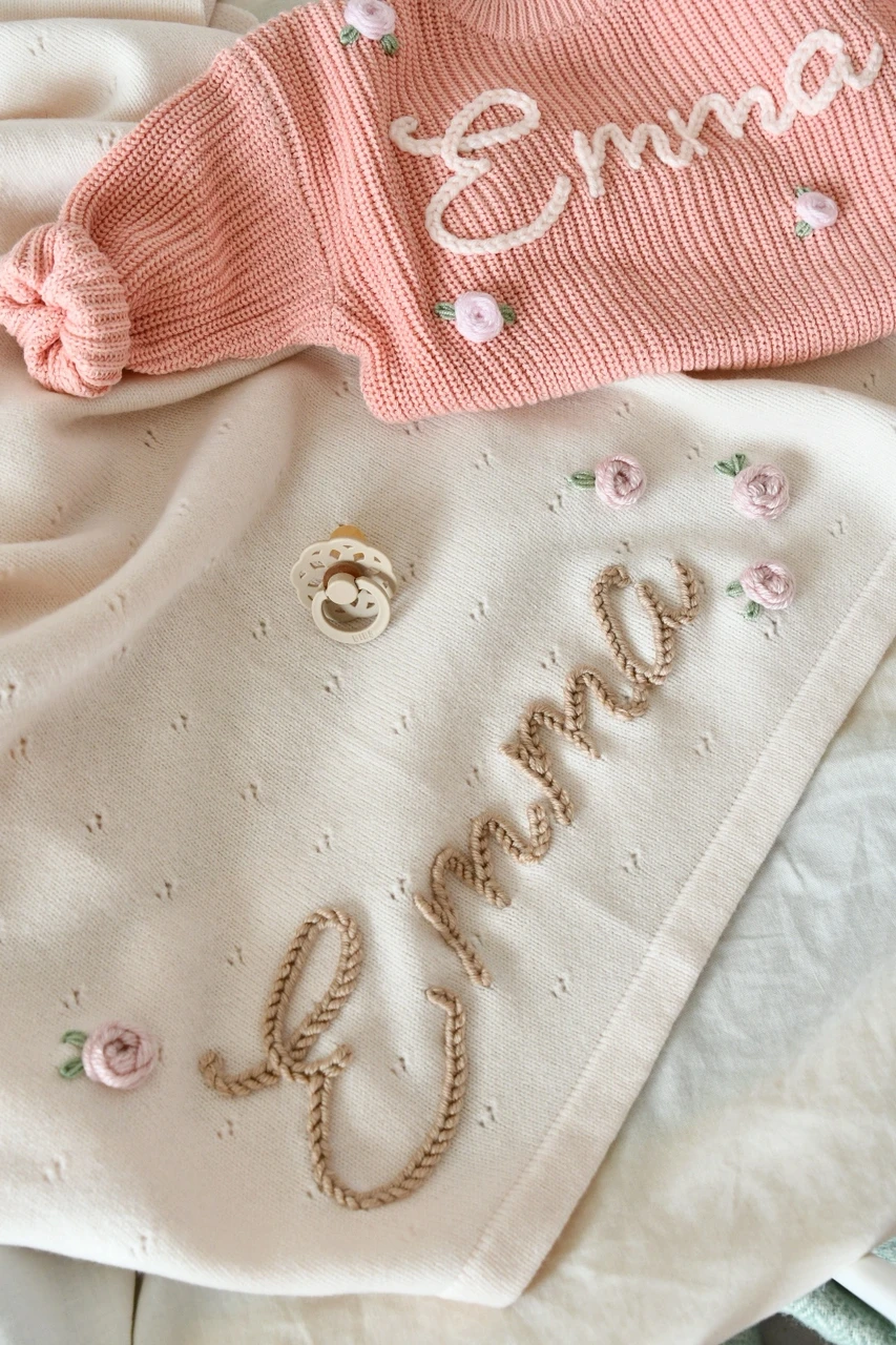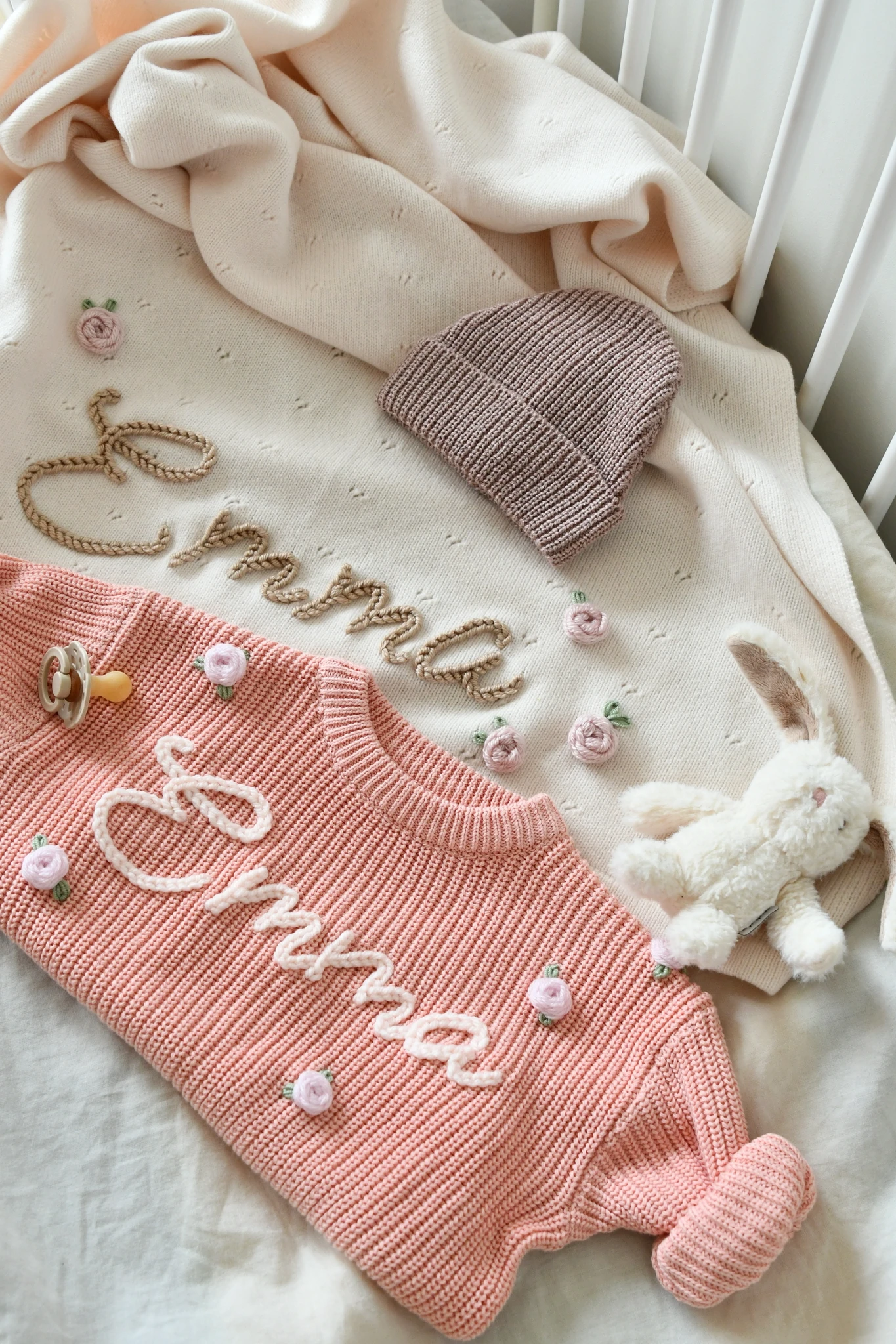 Nime tikin lühema serva äärde, laius umb A4 suurune, juurde saab lisada ka meelepäraseid tikandeid. Lõnga valik on väga lai ja muutub pidevalt, huvi korral saadan lisapilte.Tekk on valmistatud 100% meriinovillast - pehme, hingav ja loomulikult soojust reguleeriv – hoiab beebi soojas, kuid ei aja üle kuuma. Meriinovill on õrn tundlikule nahale ning sobib kasutamiseks aastaringselt.